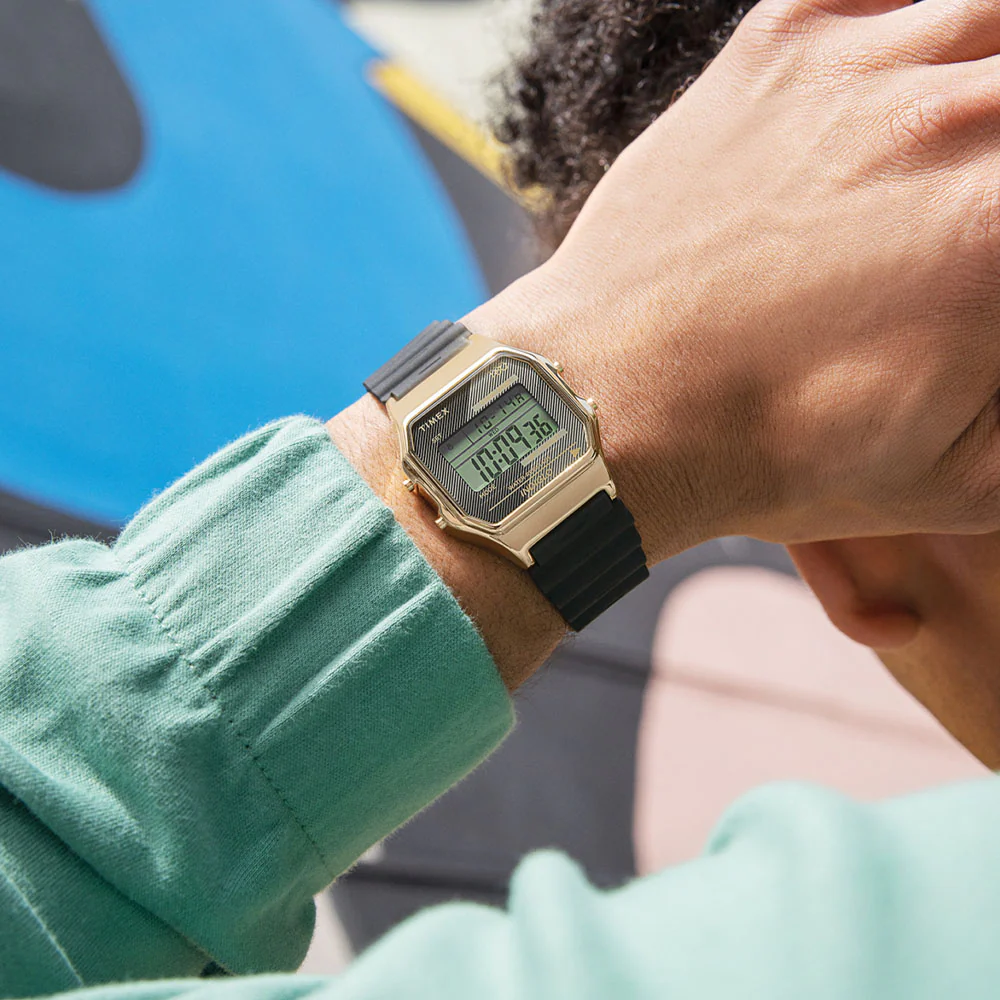American brand Timex launched this model in the 1980s with shiny metallic colors. The watch carried the spirit of disco music and cassette culture, marketed as a youthful and practical accessory. Today, Timex has reissued it as a retro classic for vintage lovers.